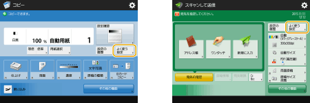 コピー、ファクス、スキャンなどで、同じ組み合わせの設定を使うことが多い場合は、<よく使う設定>として登録しておくと便利です。