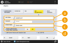 When entering the IP address, check if the usable DNS server supports only forward lookup. When the DNS server supports forward lookup only, press <Do Not Use> or <Use> in <Authentication Information> in step 4. When selecting <Use (Security Auth.)>, confirm that the DNS server supports reverse lookup.