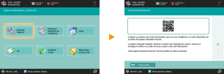 Se si preme <Domande frequenti>, compare un codice QR. Per aprire la pagina delle domande frequenti relativa alla macchina, leggere questo codice QR su un dispositivo mobile come uno smartphone o un tablet.