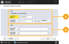 Premere <Server DNS primario> e inserire un indirizzo IPv4 del server DNS.