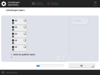 Stellen Sie sicher, dass das in der Papierzufuhr eingelegte Papier korrekt festgelegt ist. ![]() ![]() Wenn die Papierformate korrekt sind, drücken Sie <OK>. Informationen zum Bildschirm und Anweisungen zum Ändern der Einstellungen finden Sie unter Angeben von Papierformat und -typ in der Papierkassette. Wenn Sie nicht als Administrator angemeldet sind, fahren Sie mit Schritt 12 fort. | |