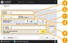 Drücken Sie <Einstellungen Funktion>  <Dateien speichern/zugänglich machen>  <Einstellungen Mailbox>  <Mailboxen einstellen/speichern>.