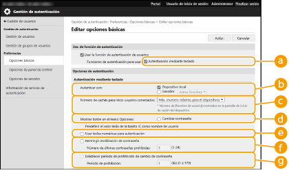 Configurar opciones detalladas de las funciones de autenticación