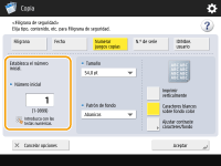 Pulse <Opciones> en la pantalla de Funciones básicas de copia. Pantalla de funciones básicas de copia