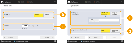 Seleccione <Auto> o <Configuración manual> para configurar cómo especificar el algoritmo de autenticación y cifrado para IKE fase 1. Si selecciona <Auto>, se configura automáticamente un algoritmo que puede ser utilizado por este equipo y el interlocutor de la comunicación. Si desea especificar un algoritmo concreto, seleccione <Configuración manual> y configure las opciones a continuación.