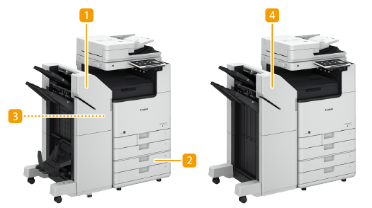 Staple Finisher-AE/Booklet Finisher-AE/2/3 Hole Puncher Unit-A/2/4 Hole Puncher Unit-A (somente para a máquina 230 V)Quando o Inner Finisher-L está instalado