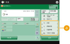 可以在<选项>中将基本功能屏幕(用于复印、传真、与扫描)上显示的设置按钮更改为其他设置按钮。在基本功能屏幕上定位常用设置按钮,可以更高效地使用相关功能。另外,使用个人认证管理进行登录时,可以为每个用户显示不同的自定义基本功能屏幕。