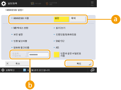 인증 및 암호화 조합을 설정합니다. <인증있음/암호화있음>, <인증있음/암호화없음> 또는 <인증없음/암호화없음>을 선택합니다.