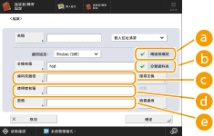 2 | 指定檔案伺服器/進階郵件信箱 資訊。 ![]() 詢問網路管理員關於檔案伺服器/進階郵件信箱 的資訊以及資料夾。 <傳送前確認>啟用 <傳送前確認> 後,即使在已 ( ) 中輸入密碼,也會顯示要求輸入密碼的畫面。 <分類資料夾>啟用 <分類資料夾> 時,每次傳送檔案,都會在 <資料夾路徑> 中指定的資料夾中建立新資料夾,並將檔案儲存在該資料夾中。傳送檔案時,您可以同時建立新資料夾並將檔案儲存在該資料夾中。 ![]() 只有在 <通訊協定> 中選擇 <Windows (SMB)> 或 <FTP> 時,此項目才會顯示。 啟用此選項時,在傳送畫面中按下 <啟動> 會顯示以下畫面。 ![]() 按下 <資料夾名稱>,輸入要建立的資料夾名稱,並且按下 <確定> <確定>。如果指定多個接收者,會發生傳送錯誤。 如果輸入的資料夾已存在,檔案將儲存到該資料夾中。 <資料夾路徑>指定將資料傳送至其中的資料夾目錄。 在對於通訊協定選擇 <WebDAV> 的情況下,將文件傳送到進階郵件信箱時,請輸入如下所示的 <資料夾路徑>。 範例: 若要儲存至共用空間:/share 若要儲存至個人空間:/users <使用者名稱>輸入檔案伺服器/進階郵件信箱 的登入使用者名稱。 <密碼>輸入檔案伺服器/進階郵件信箱 的登入密碼。 ![]() 檔案伺服器/進階郵件信箱 的接收者包含在群組中時 (將多個接收者註冊為群組),取消勾選 中的核取方塊。如果勾選此核取方塊,將無法傳送資料。如果您指定啟動 <傳送前確認> 的接收者作為轉寄接收者,則不會出現密碼輸入畫面。會使用已註冊的密碼並進行轉寄。 如果您將 <通訊協定> 設為 <Windows (SMB)> 或 <FTP>,指定在 <資料夾路徑> 中不存在的資料夾會自動產生資料夾,並在其中儲存檔案。但是,如果您指定具有多個等級的資料夾,就會發生傳送錯誤。 檢查 WebDAV 連線時,HTTP 的 HEAD 方法將用於檢查連線。<資料夾路徑> 中指定的資料夾可透過 HEAD 方法進行存取。如果相應資料夾禁止透過 HEAD 方法進行存取,連線檢查會出現錯誤。禁止透過 HEAD 方法存取的設定範例如下所示。 IIS7:除非在目標資料夾的 WebDAV 授權規則存取權限中選擇 [來源],否則無法透過 HEAD 方法執行存取。 Apache:除非使用 httpd.conf 中的 [Limit] 指令描述 HEAD,否則無法透過 HEAD 方法執行存取。 進階郵件信箱 WebDAV 伺服器:一律禁止透過 HEAD 方法存取。 |