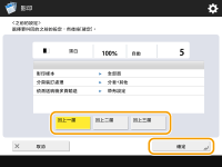 ![]() | 您可以重新叫用過去使用過的影印設定。重新叫用設定的詳細資訊可以在影印前變更。 |