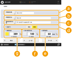 輸入 IP 位址時,請檢查可用的 DNS 伺服器是否僅支援正向對應。DNS 伺服器僅支援正向對應時,請在進行步驟 4 時在 <認證資訊> 中按 <不使用> 或 <使用>。選擇 <使用(安全性認證)> 時,確認 DNS 伺服器支援反向對應。