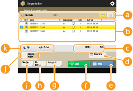 , vises <Vælg alle (maks. 100 filer)>. Hvis der er valgt en eller flere filer, vises <Slet det valgte>. Tryk på <Vælg alle (maks. 100 filer)> for at vælge op til 100 filer i boksen på samme tid eller <Slet det valgte> for at fravælge dem.