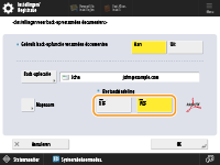 U kunt een kopie opslaan van een verzonden document door het te verzenden naar meerdere bestemmingen, waaronder een faxbestemming vanuit het scherm met basisfuncties voor scannen. Als u faxbestemmingen wilt weergeven op het scherm met basisfuncties voor scannen, moet u <Fax inschakelen bij scanen verzendfunctie> instellen op <Aan>. <Faxfunctie weergeven>