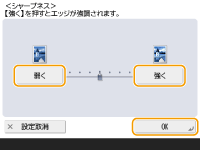 | | 輪郭や線を強調してくっきり表示させたり、反対に弱めて柔らかく表現したりできます。ぼやけた文字や図を鮮明にしたいときや、写真のモアレ(縞模様のノイズ)を軽減して滑らかにしたいときにお使いください。 |