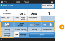 In <Favorite Settings>, you can register frequently used procedures for copying, as well as frequently specified destinations and settings for scanning. For more information, see Registering a Combination of Frequently Used Functions.