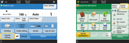 If you frequently use the same combination of settings for copy, fax, and scan, it is convenient that you have those settings registered as <Favorite Settings>.
