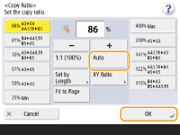 If you specified <Auto XY Ratio>, select paper in <Select Paper>. If you do not specify a paper size, the copy ratio is automatically set to match the paper loaded in paper drawer 1.