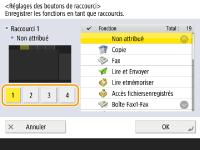 Vous pouvez créer des boutons de raccourci pour les fonctions sur l'écran <Accueil>. Utilisez ces boutons pour accéder aux fonctions sans repasser par l'écran <Accueil>. Pour créer un raccourci, vous devez être connecté avec des privilèges d'administrateur.