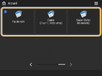 Si l’option <12 boutons moyens-petits par page> est sélectionnée dans <Réglages de disposition de l'écran Accueil>, <Commentaire> ne s’affiche pas pour les boutons partagés/personnel. Personnalisation de l’écran <Accueil>