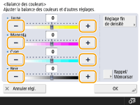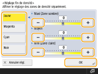 ![]() | Ajustez la densité de jaune, magenta, cyan et noir séparément. |