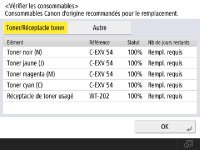 Appuyez sur  (Suivi statut)  <Consmbls./Autres>  <Vérifier les consom.>.