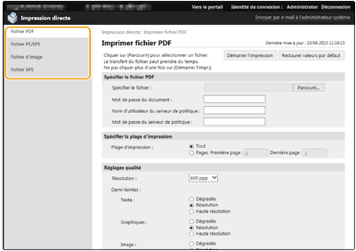 Cliquez sur [Impression directe] dans la page du portail. Ecran de l'interface utilisateur distante