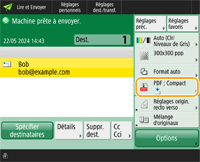 Spécifiez la destination sur l'écran Fonctions de base de numérisation.