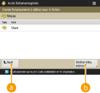 <Vérifier infos mémoire>Sélectionner un document et appuyer sur <Détails> vous permet de vérifier les informations (protocole/chemin) de l'appareil.