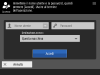 ![]() | Usare la tastiera sullo schermo per inserire il nome utente e la password. |