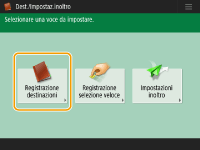 Selezionare <Fax>, <E-mail>, <I-Fax> o <File> come tipo di destinazione da registrare.