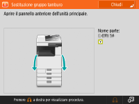 Il messaggio di sostituzione dell'unità tamburo visualizzato nella parte inferiore dello schermo varia in base al contratto. Premere <Chiudi> dopo avere terminato la sostituzione dell'unità tamburo. |