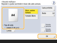 Controllare il formato e il tipo di carta, quindi premere <OK>.