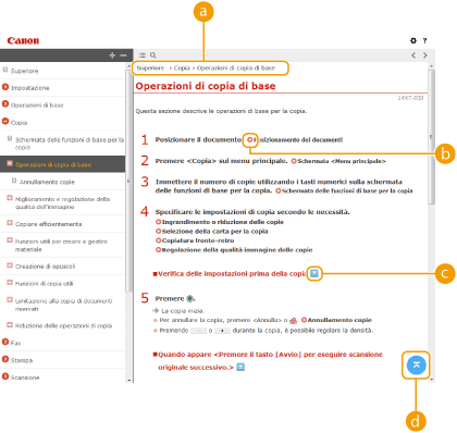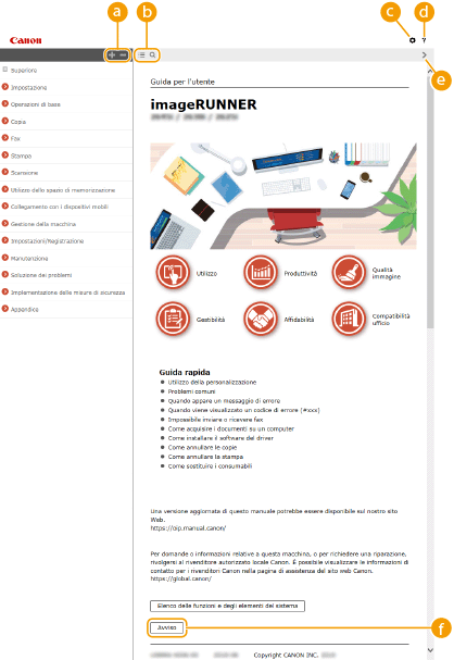 Fare clic per visualizzare informazioni su come visualizzare l'Guida per l'utente, come effettuare una ricerca e altre informazioni.