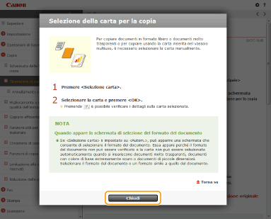 Quando si fa clic sull'icona, la pagina corrente potrebbe oscurarsi e potrebbe apparire una finestra a comparsa. Per tornare alla pagina, fare clic su [Chiudi] nella finestra a comparsa.