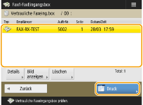 Sie können festlegen, die URL des Speicherorts per E-Mail beim Empfang der Dokumente zu erhalten. Wenn Sie einfach die URL in die Adressleiste des Webbrowsers eingeben, können Sie die Inhalte der Dokumente über Remote UI auf Ihrem Computer prüfen. <Vertr. Faxeingangsboxen einstellen/speichern> Indem Sie eine beliebige Ebene der Posteingänge für Faxe unter der Schaltfläche <Persönlich>/<Gemeinsam> registrieren, können Sie schneller und effizienter arbeiten. |