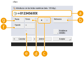 Pulse <Nombre>  introduzca el nombre de destino y pulse <Aceptar>.