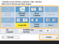 No se mostrará un botón de acceso directo si <No asignado> se establece como acceso directo.