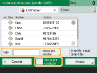 Pulse <Buscar por condición>, especifique las condiciones de búsqueda en la pantalla y pulse <Iniciar búsqueda>.