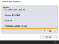 Puede comprobar el equipos y las funciones opcionales instaladas en este equipo.