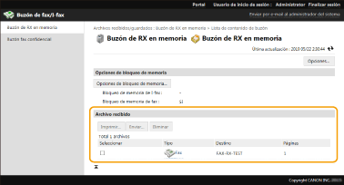 Haga clic en [Archivos recibidos/guardados] en la página del portal. Pantalla de la IU remota