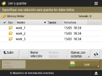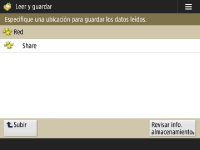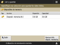 Pantalla de selección de almacenamiento