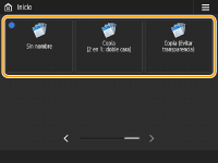 Para registrar un botón Personal, tiene que iniciar una sesión con la gestión de autenticación personal. Configurar las opciones de la administración de autenticación personal Si selecciona <Inf. autentic. inicio de sesión de dispositivo> para <Inf. usada para aut. TX/exploración de arch.>, no se almacenará una contraseña para un destino de archivo en un botón personal. <Inf. usada para aut. TX/exploración de arch.> Para obtener información acerca de la cantidad máxima de botones personales/compartidos que es posible registrar, consulte Funciones de gestión. Los botones personales no pueden cambiarse a botones compartidos ni viceversa. Para hacerlo, recupere las opciones y registre otro botón desde .Mantenga pulsado un botón para cambiar su nombre/comentario o moverlo/eliminarlo. Pueden realizarse las mismas operaciones (cambiar el nombre/comentario de un botón o moverlo/eliminarlo) desde en la pantalla <Inicio>. Personalización de la pantalla <Inicio>Los botones personales pueden compartirse entre varios dispositivos sincronizando los datos personalizados. Lista de elementos que se pueden personalizar Opciones que se pueden registrar en los botones personales/compartidosLas funciones y opciones que se pueden registrar en los botones personales/compartidos son las siguientes. Opciones que se pueden registrar en <Opciones favoritas> para la función <Copia> Reducir operaciones de copia <Fax> opciones de función del equipo Operaciones básicas para enviar faxes Opciones que se pueden registrar en <Opciones favoritas> para la función <Leer y enviar> Funciones de lectura útiles Opciones que se pueden registrar en <Opciones favoritas> para la función <Leer y guardar> Configurar la pantalla y las operaciones para escanear y luego guardar Guarde ubicaciones para las funciones <Leer y guardar> y <Archivos guardados> Usar el espacio de almacenamiento Accesos directos a la pantalla Funciones básicas para la función <Buzón de fax/I-fax> Se pueden registrar el acceso a un servidor y la contraseña de inicio de sesión en los botones personales/compartidos. Esto resulta cómodo para omitir la introducción de contraseña al recuperar el botón registrado. Si desea establecer la contraseña en la configuración almacenada del botón registrado, en vista de que importa con frecuencia ajustes en un botón personal o compartido a otro equipo y desea evitar que se finja ser otro usuario, excluya la contraseña al registrarse. Importar/exportar los botones registradosPuede importar y exportar los botones Personales/Compartidos registrados desde la IU remota. Importar/exportar todas las opciones La importación por lote de los botones personales/compartidos podría no estar disponible en función del modelo del equipo desde el que se va a importar. Para obtener más información, póngase en contacto con su distribuidor o representante del servicio técnico. |