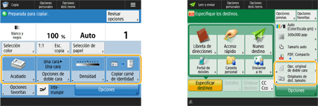 Si suele utilizar la misma combinación de ajustes para realizar copias, mandar un fax y escanear, le recomendamos que registre dichos ajustes como <Opciones favoritas>.