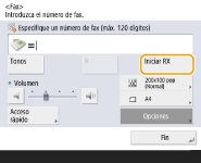 <RX automática> ![]() | Dedicado a la recepción de faxes El equipo recibe faxes automáticamente. Incluso si alguien le llama, no podrá hablar con él. |