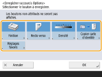 Les boutons affichés dans cette fenêtre sont les boutons actuellement affichés sur l'écran des fonctions de base. Les boutons sélectionnés à cette étape ne seront plus affichés sur l'écran des fonctions de base.