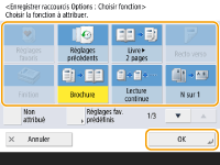 Pour la fonction Copie, vous pouvez enregistrer les réglages favoris configurés sous forme de raccourci depuis <Réglages fav. prédéfinis>.