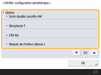 Vous pouvez vérifier les équipements et fonctions optionnels installés sur cet appareil.