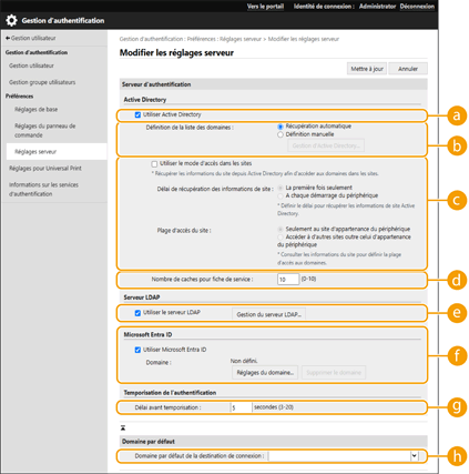 Réglages [Conditions] en cas d'utilisation des serveurs Active Directory