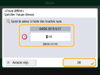 Saisissez l'heure à laquelle envoyer/sauvegarder et appuyez sur <OK>.