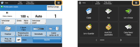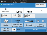 Pressione exibido na tela <Início> e na tela Recursos Básicos para personalizar a tela, como reorganizar os botões ou criar uma tecla de atalho. Personalizando a tela do painel de toque![]() Você pode alterar as configurações relacionadas à exibição da tela, como qual tela aparece imediatamente após ligar a máquina, e se a mensagem de papel e toner restante é exibida ou não. <Programações de apresentação> Você pode definir qual tela exibir quando a máquina fica inoperante após uma certa quantidade de tempo. <Função após reposição automática> |